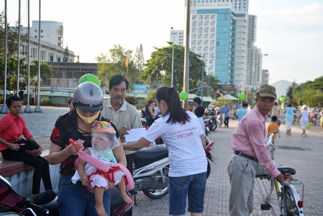 Tổng hợp hình ảnh hai blogger Mẹ Nấm - Nguyễn Ngọc Như Quỳnh, Binh Nhì - Nguyễn Tiến Nam cùng bạn bè phân phát Bản Tuyên ngôn Quốc tế Nhân Quyền cùng những quả bóng bay tại Nha Trang